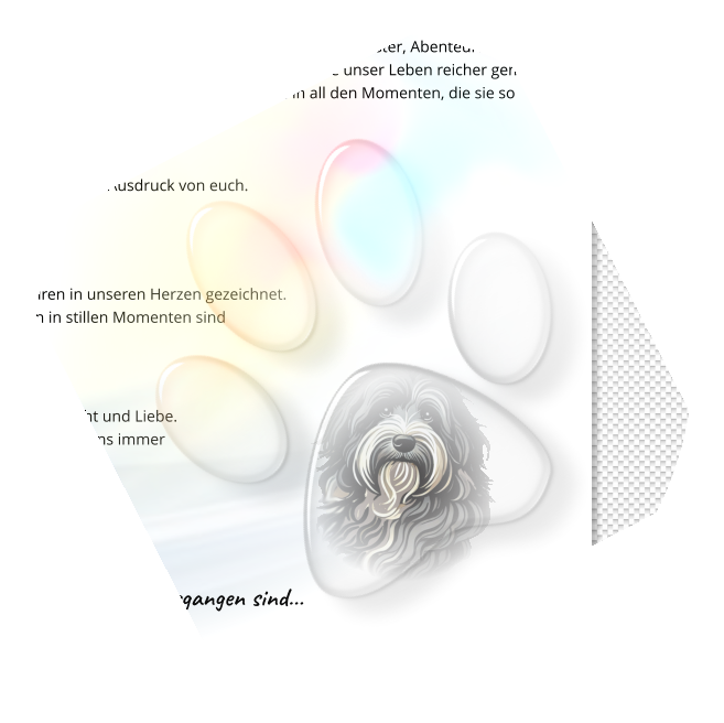 In liebevoller Erinnerung an unsere treuen Gefährten Es gibt Hunde, die begleiten uns nur einen Teil unseres Weges — und dann gibt es jene, die unsere Herzen für immer berühren, sie hinterlassen Spuren für die Ewigkeit. Unsere Schapendoezen, die einst voller Lebensfreude durch Wiesen tollten, Welpen mit Hingabe aufzogen und mit ihrem sanften Wesen unsere Zucht bereicherten, gehören zu diesen ganz besonderen Seelen. Unsere geliebten Hunde waren mehr als nur Haustiere. Sie waren Seelentröster, Abenteurer, stille Zuhörer und bedingungslose Freunde. Mit jedem Schwanzwedeln, jedem Blick aus treuen Augen und jeder stillen Nähe haben sie unser Leben reicher gemacht. Auch wenn sie nun nicht mehr an unserer Seite laufen, leben sie weiter – in unseren Herzen, in unseren Erinnerungen und in all den Momenten, die sie so besonders gemacht haben. - Ihr wart mehr als Zuchthunde — ihr wart Familienmitglieder, Freunde, Seelentröster.- Mit eurer Geduld, eurer Liebe und eurem einzigartigen Charakter habt ihr Generationen geprägt.- In jedem eurer Nachkommen lebt ein Stück eurer Seele weiter — ein Blick, ein Wesen, ein leiser Ausdruck von euch.Euer Platz bleibt für immer in unseren Herzen!Diese Seite ist euch gewidmet: als Ort des Gedenkens, der Dankbarkeit und der Liebe.Auch wenn eure Pfoten keine Spuren mehr im Garten hinterlassen, so habt ihr tiefe Spuren in unseren Herzen gezeichnet. Die Erinnerungen an eure verspielte Art, eure klugen Augen und euer sanftes Schnaufen in stillen Momenten sind ein kostbarer Schatz, den wir für immer bewahren.Hinter der RegenbogenbrückeWir stellen uns vor, wie ihr nun über endlose Wiesen lauft, frei von Schmerz, umgeben von Licht und Liebe. Vielleicht schaut ihr manchmal zu uns herab, mit diesem typischen Schapendoes-Lächeln, das uns immer wieder zum Schmunzeln brachte. Danke für alles, was ihr uns gegeben habt.Danke für eure Liebe, euer Vertrauen, eure Treue.Ihr bleibt unvergessen.Möge jeder Name, jedes Bild und jede Geschichte hier ein kleines Licht sein – für all die Seelen, die uns so viel gegeben haben und nun über die Regenbogenbrücke gegangen sind…